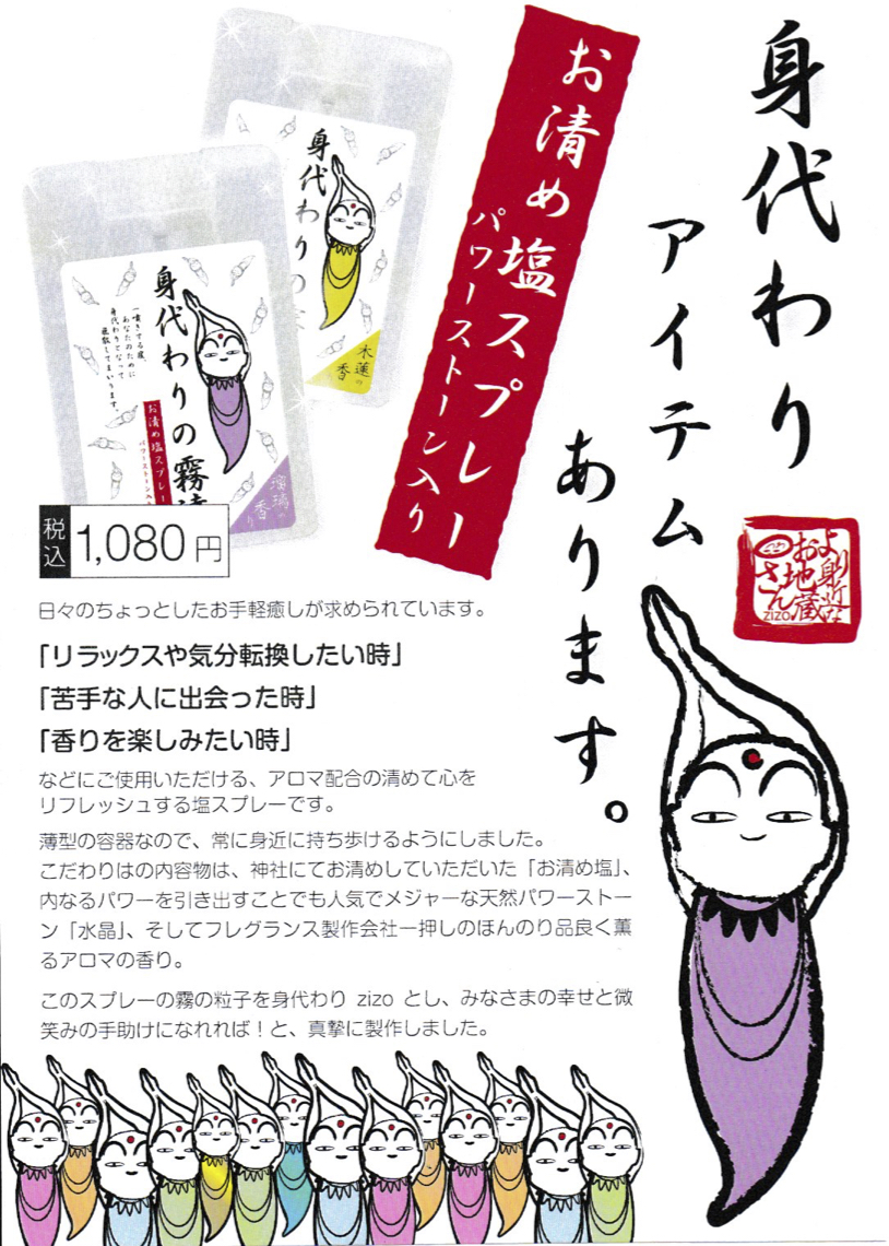「お清め塩スプレー」をプロデュースしました。 ・リラックスや気分転換したい時 ・苦手な人に出会った時 ・香りを楽しみたい時 などにご使用いただける、アロマ配合の清めて心をリフレッシュする塩スプレーです。こだわりの内容物は神社にてお清めしていただいた「お清め塩」、内なるパワーを引き出すことでも人気でメジャーな天然パワーストーン「水晶」、そしてフレグランス制作会社一押しのほんのり品良く薫るアロマの香りです。薄型の容器で、常に身近に持ち歩けるタイプです。 そのほかにも会社のノベルティや商品としての制作も承っております。 |